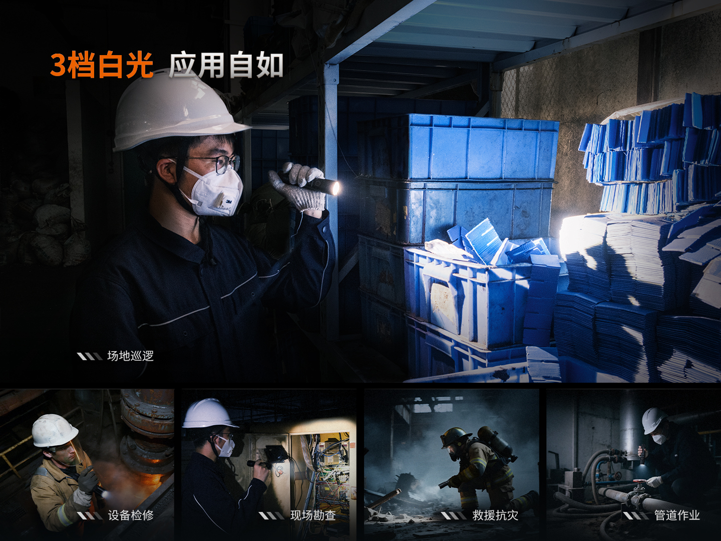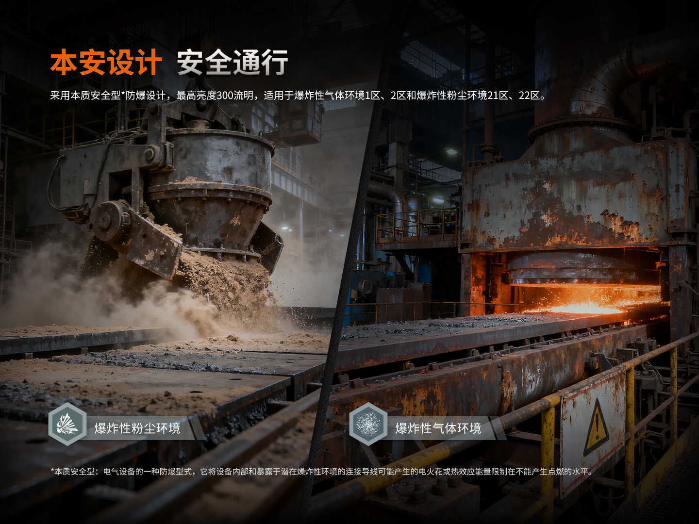 Ex ib IIIC T130℃ Db - 预期使用环境本手电筒可在1区和2区(存在 IIA、IIB 和 IIC 类爆炸性气体混合物的环境)使用;并可在可燃性粉尘环境:21区和22区使用。