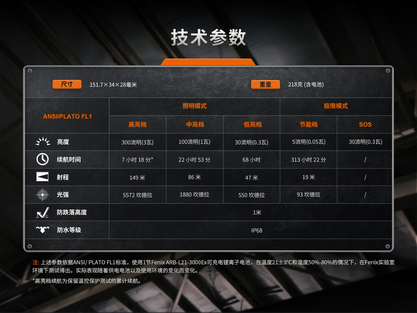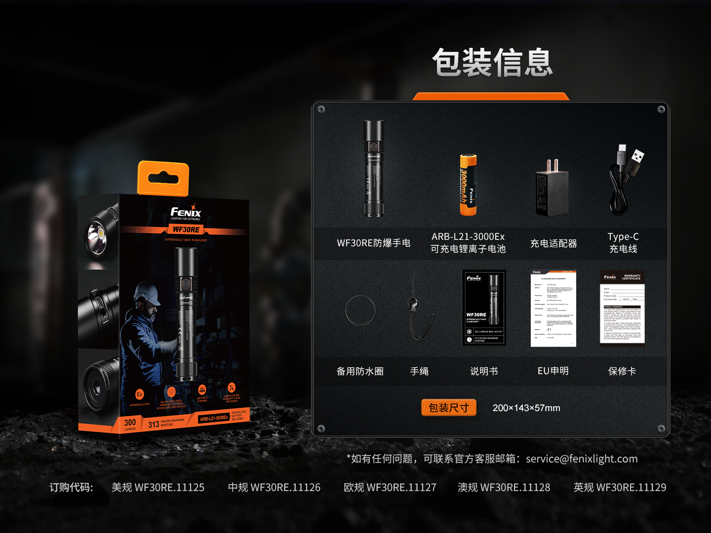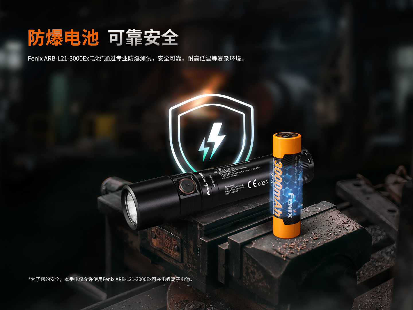 - Fenix ARB-L21-3000Ex使用1节经过专业防爆测试的Fenix ARB-L21-3000Ex可充电锂离子电池